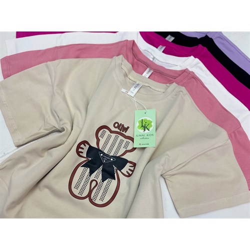 Ищете что-то особенное для вашего ребенка? Обратите внимание на нашу новую футболку для девочек с симпатичным принтом медвежонка, украшенную стильным бантом!