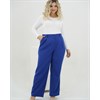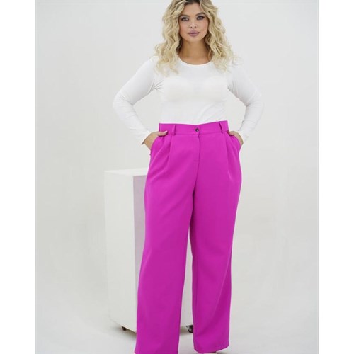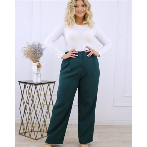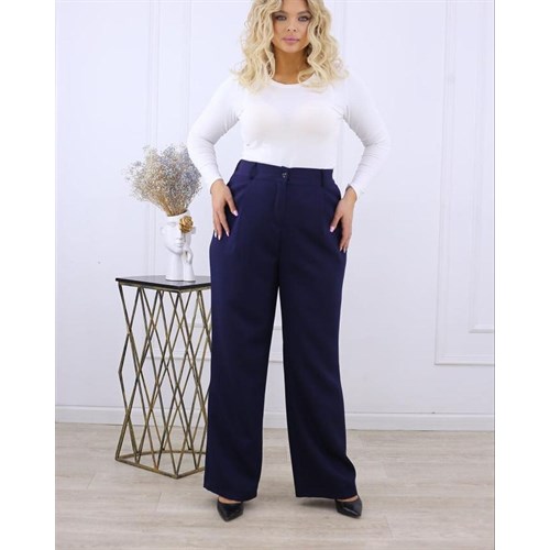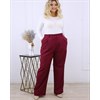 Базовые брюки прямого силуэта на высокой посадке. Передние половинки брюк со складками, в боковых швах наклонные рабочие карманы. Застежка-гульфик на рабочую молнию спереди, пояс застёгивается на пуговицу и на эластичной резинке по спинке брюк.
