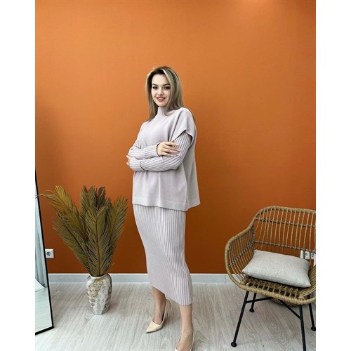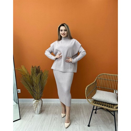 Уютное платье с безрукавкой имеется у нас в цветах ( черный, серый, нежно розовый и Айвори)