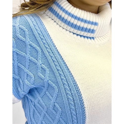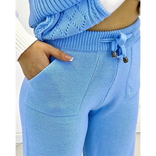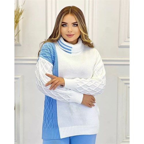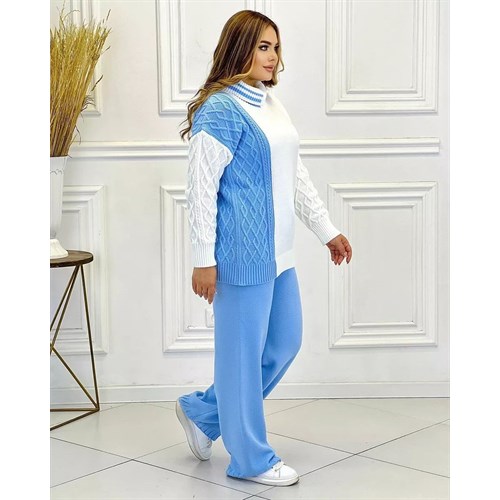 Невероятно уютный, теплый костюм в шикарном голубо-белом цвете согреет вас в холодные осенние и зимние дни