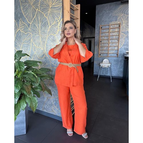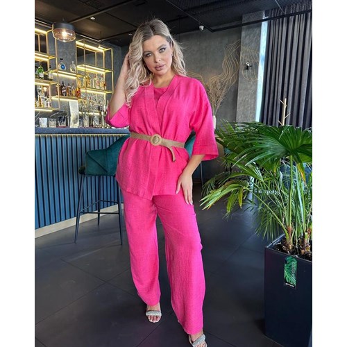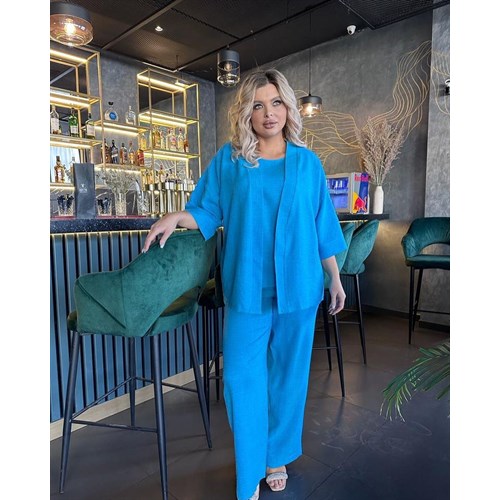 Тройка в стиле Кимоно - это must have в женском гардеробе. Очень удобная и стильная тройка для жаркого лета из Льна. Комплект состоит из трех элементов накидка, майка ,брюки расклешенные и плетенный ремень к дополнению. Можно носить как двойку , тройку или же сочетать с другими одеждами.