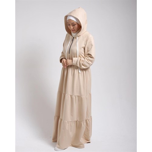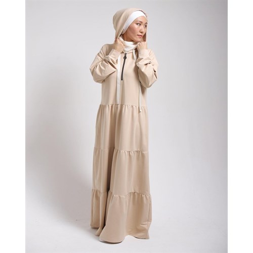 Ярусные платья с капюшоном, на груди рабочий замок.