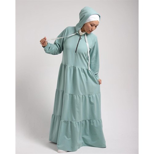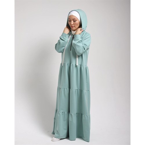 Ярусные платья с капюшоном, на груди рабочий замок.