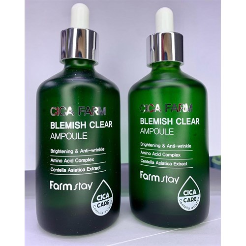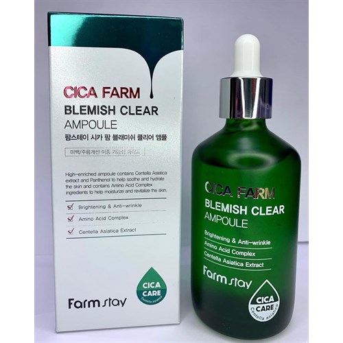 Ампульная сыворотка с центеллой азиатской FarmStay Cica Farm Blemish Clear Ampoule содержит комплекс аминокислотных компонентов, которые помогают увлажнить и оживить кожу лица. Сыворотка предназначена для успокаивающего, увлажняющего и восстанавливающего ухода за кожей. Подходит для всех типов, особенно рекомендуется для чувствительной и раздраженной кожи.