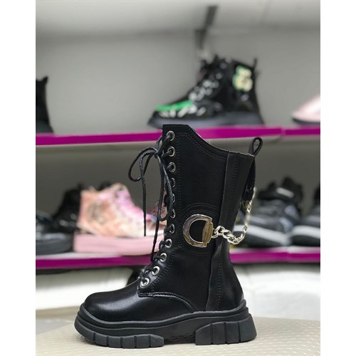 Длинные зимние сапожки для девочек на шнурках и замочке